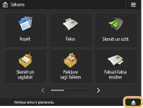 Pārbaudiet pirms atmiņas ierīces lietošanasLai izmantotu atmiņas nesēju, iespējai <Atmiņas ierīce> iestatījumos <Saglabāšanas vietas attēlojuma iestatījumi> ir jābūt iestatītai kā <Iesl.>. <Saglabāšanas vietas attēlojuma iestatījumi> Iestatiet opciju <Lietot skenēšanas funkciju> un <Lietot drukas funkciju> pozīcijā <Iesl.>. <Lietot skenēšanas/drukas funkciju> Ja atmiņas nesējs netiek atpazīts, pat ja tas ir pareizi pieslēgts, iekārta var būt iestatīta izmantot AddOn draiveri kā USB ārējās uzglabāšanas ierīci. Iestatiet opciju <Lietot AddOn draiveri USB krātuves ierīcei> pozīcijā <Izsl.>. <Lietot AddOn draiveri USB krātuves ierīcei> |