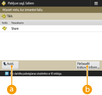 Nospiediet <Nosaukums> vai <Dat./laiks>, lai šķirotu failu un mapju sarakstu pēc nosaukuma vai datuma/laika augošā (