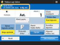 Parāda iestatījumu statusu, piemēram, drukas papīra formātu un izdruku skaitu. Neaizmirstiet apstiprināt iestatījumus, lai drukāšana notiktu pareizi. Lai mainītu iestatījumus, nospiediet pogu zem ekrāna daļas. Lai mainītu izdruku skaitu, ievadiet vajadzīgo skaitu, izmantojot ciparu taustiņus.