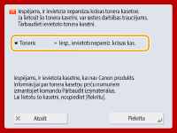 Lai izlaistu drukāšanu, attiecībā uz kuru parādījās kļūda, nospiediet <Izlaist kļūdu>. Dati, attiecībā uz kuriem tika parādīta kļūda, netiks izdrukāti.