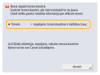 Iekārtas ieslēgšana). Ja ziņojums joprojām ir redzams arī pēc iekārtas restartēšanas, pierakstiet ziņojumu un sazinieties ar vietējo pilnvaroto Canon izplatītāju.