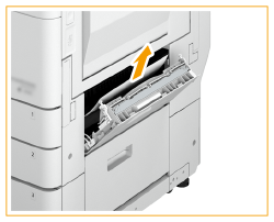 Pārbaudiet, vai papīra atvilktnes labās puses augšējā vai apakšējā vākā nav iestrēdzis papīrs.