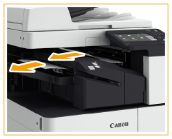 Ja papīrs ir iestrēdzis, uzmanīgi izvelciet to bultiņas norādītajā virzienā.
