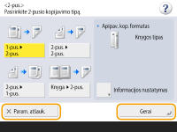 apatiniame dešiniajame kampe, kad matytumėte parametrų ekraną. Nustačius parametrą, parametro būsena rodoma viršutinėje mygtuko skiltyje, apatinės skilties spalva pasikeičia.
