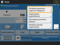 Pagrindinių kopijavimo veiksmų ekrane paspauskite <Parankin. parametr.>. Pagrindinių kopijavimo funkcijų ekranas
