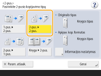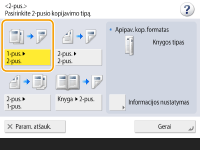 Kopijavimui <Book 2-Sided>gali būti naudojamas tik A4 formato popierius.Pasirinkę <Book 2-Sided>, dėkite originalus ant ekspozicinio stiklo. |