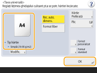 ![]() | Aveţi grijă ca setarea pentru formatul hârtiei din sertar să corespundă formatului de hârtie care se va încărca în sertar. |