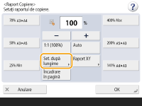 ![]() | Puteţi să măriţi sau să micşoraţi prin specificarea raportului de copiere (%). Puteţi să specificaţi individual rapoartele pe verticală şi pe orizontală. Mărirea sau micşorarea copiilor prin specificarea raportului de copiere | |