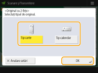 ![]() | Când scanaţi un original, puteţi specifica culoarea. |
