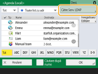 Numai destinaţiile de e-mail pot fi specificate din agenda unui dispozitiv mobil. Pentru a utiliza această funcţie, trebuie să instalaţi aplicaţia „Canon PRINT Business” pe dispozitivul dumneavoastră mobil. Utilizarea aparatului prin aplicaţii |