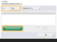 Pentru a selecta o destinaţie din ecranul <Rapid> după scanare, setaţi <Rapid> pentru <Ecran predefinit>. Munca necesară pentru transmiterea documentelor scanate la aceeaşi destinaţie poate fi redusă. <Transmitere> Destinaţiile înregistrate în butoanele rapide ale aparatului server sunt actualizate în următoarele cazuri: Când o lucrare de fax a fost trimisă de pe aparatul client Când apăsaţi tasta Resetare de pe aparatul client Când opţiunea Resetare automată este activată pe aparatul client |