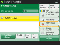 . Când scanarea tuturor originalelor este finalizată, apăsaţi <Înc. transmit> pentru a trimite/salva fişierul.![]() |