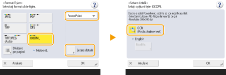 1 | Selectaţi <OOXML> selectaţi <PowerPoint> din lista verticală. apăsaţi <Setare detalii> <OCR (Căutare Text)>.![]() |