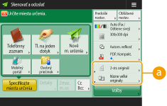 Tlačidlá nastavení, ktoré sa zobrazujú na obrazovkách základných funkcií (na kopírovanie, faxovanie a skenovanie), je možné meniť inými tlačidlami nastavení v časti <Voľby>. Umiestnením tlačidiel často používaných nastavení na obrazovku základných funkcií môžete zvýšiť efektivitu používania funkcií. Ak sa navyše prihlasujete so správou osobného overovania, môžete zobraziť rôzne obrazovky základných funkcií prispôsobené pre každého používateľa.