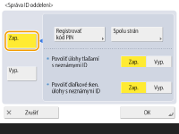 2 | Stlačte tlačidlo <Uložiť>. ![]() Úprava nastavení ID oddelenia Vyberte ID oddelenia, ktoré chcete upraviť, a stlačte tlačidlo <Editovať>. Zobrazí sa obrazovka úprav. Odstránenie nastavení ID oddelenia Vyberte ID oddelenia, ktoré chcete odstrániť, a stlačte tlačidlo <Zmazať> <Áno>. |