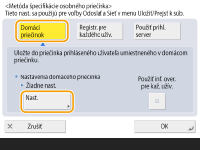 Osobný priečinok je priečinkom zdieľaným na nasledujúcich obrazovkách. <Skenovať a odoslať> <Sieť> v časti <Skenovať a uložiť> <Sieť> v časti <Prejsť k uloženým súborom> |