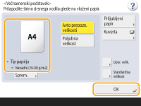 ![]() | Nastavitev velikosti papirja kasete za papir se mora ujemati z velikostjo papirja, naloženega v kaseto za papir. |
