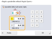 Vnesite dolžino strani <X> in strani <Y>. Pritisnite <X> ali <Y>, da s številskimi tipkami vnesete dolžino obeh stranic.