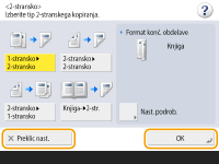 Ogled priročnika s funkcijamiPritisnite <Vadnica>, če želite prikazati zaslon, na katerem je predstavljeno, kaj lahko počnete s funkcijami naprave in tudi nasveti za kopiranje, optično branje in drugo. Na tem zaslonu lahko izveste več o razpoložljivih funkcijah in načinih njihove uporabe. ![]() Primer: Vadnica za funkcije kopiranja Ko na seznamu izberete element, se prikaže zaslon z vadnico. ![]() Uporaba funkcije pomočiV zgornjem desnem kotu zaslona je občasno prikazana ikona , odvisno od prikazane funkcije. Pritisnite , če si želite ogledati opis in način delovanja funkcije.![]() Pritisnite <Konec>, če se želite vrniti na prejšnji zaslon. Uporaba na isti način kot v pametnem telefonu (poteg/vlečenje in spuščanje)Na nekaterih zaslonih lahko preklopite med stranmi ali se pomikate tako, da na zaslonu s prstom povlečete gor/dol ali levo/desno, tako kot v pametnem telefonu. ![]() ![]() Funkcijo vlečenja lahko tudi onemogočite. <Uporabi funkcijo vlečenja> Funkcij potega ter vlečenja in spuščanja ni mogoče uporabljati, če je možnost <Preobrnitev barv zaslona> nastavljena na <Vklj.>. <Preobrnitev barv zaslona> Na zaslonih s premičnimi gumbi lahko gumbe premikate tako, da jih povlečete in spustite. ![]() |