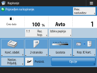 Prilagajanje zaslona z osnovnimi funkcijamiPrimer: Zaslon z osnovnimi funkcijami kopiranja