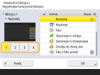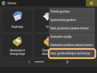 Na zaslonu <Domov> lahko ustvarite bližnjični gumb za funkcije. S tem gumbom lahko dostopate do druge funkcije, ne da bi se bilo treba vrniti na zaslon <Domov>. Če želite ustvariti bližnjico, se prijavite s skrbniškimi pravicami.
