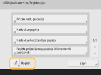 Če možnost <Bližnjica Nast./Registr.> ni prikazana v meniju <Domov>, pritisnite  <Nastavitve ureditve zaslona Domov>  <Omejitev prikaza funkcije>  <Nastavitev>  nastavite prikaz možnosti <Bližnjica Nast./Registr.>. Bližnjice, ki jih je mogoče registrirati: 10 |