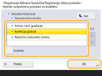 Izberite nastavitve, ki jih želite registrirati kot bližnjice, in pritisnite <OK>.