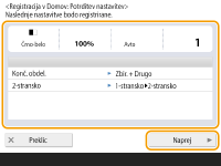 Če želite registrirati osebni gumb, se morate prijaviti z upravljanjem osebnega preverjanja pristnosti. Konfiguracija nastavitev upravljanja osebnega preverjanja pristnosti Če izberete <Pod. za over. prij. v napr.> za <Podatki za overovitev ODD datoteke/Brskanja>, se geslo za cilj datotek ne shrani na osebnem gumbu. <Podatki za overovitev ODD datoteke/Brskanja> Če želite informacije o največjem dovoljenem številu osebnih gumbov/skupnih gumbov, ki jih je mogoče registrirati, glejte Funkcije upravljanja. Osebnih gumbov ni mogoče spremeniti v skupne gumbe in obratno. Če želite to narediti, prikličite nastavitve in registrirajte drug gumb v <Menu>. Pridržite gumb, če želite spremeniti njegovo ime/komentar ali ga premakniti/izbrisati. Enake postopke (spreminjanje imena/komentarja gumba ali premikanje/brisanje gumba) je mogoče izvesti v <Menu> na zaslonu <Domov>. Prilagajanje zaslona <Domov> Osebne gumbe je mogoče deliti z več napravami s sinhronizacijo prilagojenih podatkov. Seznam elementov, ki jih je mogoče prilagoditi Nastavitve, ki jih je mogoče registrirati za osebne gumbe/skupne gumbeFunkcije in nastavitve, ki jih je mogoče registrirati za osebne gumbe/skupne gumbe, so navedene spodaj. Nastavitve, ki jih je mogoče registrirati v <Nastavitve Priljubljeno> za funkcijo <Kopiranje> Zmanjševanje postopkov kopiranja Nastavitve funkcije <Faks> naprave Osnovni postopki za pošiljanje faksov Nastavitve, ki jih je mogoče registrirati v <Nastavitve Priljubljeno> za funkcijo <Skeniranje in oddaja> Uporabne funkcije za optično branje Nastavitve, ki jih je mogoče registrirati v <Nastavitve Priljubljeno> za funkcijo <Skeniranje in shranjevanje> Zaslon z nastavitvami in operacije za shranjevanje optičnega branja Mesta shranjevanja za funkciji <Skeniranje in shranjevanje> in <Dostop do shranjenih datotek> Uporaba prostora za shranjevanje Bližnjice do zaslona z osnovnimi funkcijami za funkcijo <Faks/I-Faks predal> Dostop do strežnika in gesla za prijavo je mogoče registrirati za osebne gumbe/skupne gumbe. To je priročno, če želite pri priklicu registriranega gumba preskočiti vnos gesla. Če želite nastaviti geslo v nastavitvah, shranjenih za registrirani gumb, ker pogosto nastavitve za osebni gumb ali skupni gumb uvažate v drugo napravo in želite preprečiti, da bi se uporabniki lahko izdajali za druge, pri registraciji izključite geslo. Uvoz/izvoz registriranih gumbovRegistrirane osebne gumbe/skupne gumbe lahko uvozite in izvozite v vmesniku Daljinski UI. Uvoz/izvoz vseh nastavitev Osebne gumbe/skupne gumbe naprav serije imageRUNNER ADVANCE, ki imajo funkcijo hitrega menija, je mogoče uvoziti/izvoziti kot osebne gumbe/skupne gumbe. |