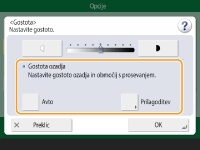![]() | Prilagodite lahko gostoto ozadja. Pošiljate lahko jasne izvirnike z barvnim ozadjem ali tanke izvirnike, na primer časopise, pri katerih so znaki in slike na hrbtni strani vidni prosojno. Prilagajanje gostote ozadja |