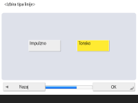 Izberite nastavitve, potrebne za uporabo funkcije za faksiranje. ![]() Če dodatna oprema, potrebna za faksiranje (Sistemske možnosti), ni nameščena, nadaljujte na 11. koraku. Če se prikaže zaslon za izbiro, izberite državo/regijo in pritisnite <Naprej>. ![]() ![]() Vnesite številko faksa in pritisnite <Naprej>. Za informacije o nastavitvah faksa glejte Nastavitve linije za faks. ![]() ![]() Pritisnite <Nastavitev>, vnesite ime uporabnika in pritisnite <Naprej>. ![]() ![]() Izberite vrsto linije in pritisnite <OK>. | |