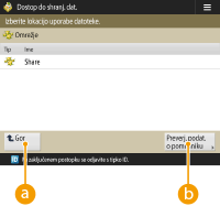 Prikaz gumba za preklopPritisnite <Gor>, da se premaknete eno raven višje. Če želite posodobiti vsebino prikazanega zaslona, pritisnite