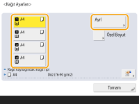 1 | Kağıdın yüklendiği kağıt çekmecesini seçin ve <Özel Boyut> seçeneğine basın. |