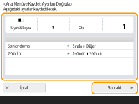 Ayarları onaylayın ve <Sonraki> seçeneğine basın.