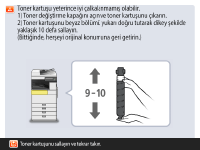 Toner azalmaya başladığında ya da bittiğinde, yeni bir toner kartuşu hazırlamanızı veya toner kartuş değişimini gerçekleştirmenizi isteyen bir mesaj görüntülenir. Görüntülenen mesaja göre yeni bir toner kartuşu hazırlayın veya toner kartuşunu değiştirin.