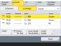 Bir belge başarıyla gönderildiğinde veya kaydedildiğinde <Sonuç> sütununda <Tamm> seçeneği görüntülenir. <NG> ifadesi görüntüleniyorsa, bu durum, iptal edildiği ya da bir hata oluştuğu için belgenin gönderilemediğini veya kaydedilemediğini gösterir.