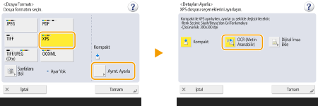 1 | <XPS> seçeneğini belirleyip <Ayrnt. Ayarla> <OCR (Metin Aranabilir)> seçeneğine basın.![]() |