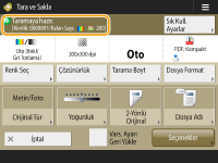 <Ana Ekran> ekranında <Tara ve Sakla> seçeneğine bastığınızda ve sonra orijinalleri taramak için <Ağ> veya <Bellek Ortamı> seçeneğine bastığınızda, aşağıdaki ayar ekranı görüntülenir.