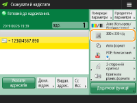 Визначення верхньої та нижньої частин оригіналуПеред скануванням можна встановити орієнтацію документа, щоб його верхня й нижня частини відображалися належним чином під час перегляду надісланого/збереженого файлу на комп’ютері. У разі розміщення оригіналу формату A4 натисніть <Додаткові функції> на екрані основних функцій сканування <Орієнт. вмісту оригіналу> <Верхня частина нижнього поля> <OK>.У випадку розміщення оригіналів великого формату, зокрема A3, натисніть <Додаткові функції> на екрані основних функцій сканування <Орієнт. вмісту оригіналу> виберіть <Верхня частина нижнього поля> або <Верхня частина бічного поля> відповідно до орієнтації оригіналу натисніть <OK>.Зазначення кількох адресатів, зокрема факсівУстановіть для параметра <Увімкнути факс під час дії функції Сканувати та надіслати> значення <Увімк.>, щоб указати адресатів факсу на екрані основних функцій сканування (<Відображати функцію факсу>). Цей параметр корисно використовувати для зазначення кількох адресатів, зокрема факсів, наприклад, під час збереження копії надісланого факсу на файловому сервері. Перевірка відсканованих зображень перед надсиланням/збереженнямПерш ніж надсилати/зберігати відскановані зображення, їх можна перевірити на екрані попереднього перегляду. Перевірка відсканованих оригіналів перед надсиланням/збереженням (попередній перегляд) Реєстрація параметрів, які часто використовуютьсяАдресатів і параметри сканування, які часто використовуються, можна поєднати на кнопці апарата для використання в подальшому. Натиснувши зареєстровану кнопку під час сканування оригіналів, можна швидко встановити необхідні параметри. Реєстрація комбінації часто використовуваних функцій |