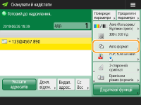Перевірка загальної кількості вказаних адресатівЗагальна кількість зазначених адресатів відображається в правому верхньому кутку екрана. Таким чином перед надсиланням можна підтвердити, що кількість адресатів указано правильно. ![]() Негайне скасування завдання, що надсилаєтьсяЯкщо під час надсилання завдання натиснути на панелі керування, з’явиться повідомлення <Можна скасувати вказане нижче завдання надсилання?>. Натисніть <Так>, щоб скасувати надсилання.Щоб вибрати завдання, яке потрібно скасувати, можна вибрати <Останнє отримане завд.> або <Завдання, яке надсил.>. <Завд., яке скасовується під час натискю клавіші Стоп> Якщо є кілька завдань надсилання, натисніть , щоб відобразити екран для вибору завдання надсилання, яке потрібно скасувати. Якщо завдання надсилання, яке потрібно скасувати, не відображається, натисніть кнопку <Перев. інші завдання>, щоб відобразити <Завдання надсил.>. Виберіть завдання, яке потрібно скасувати, і натисніть <Скасувати>.Перевірка станів надісланих і збережених оригіналівНа екрані <Монітор стану> можна перевірити стани надісланих/збережених документів. На цьому екрані можна виконати повторне надсилання/зберігання документів або скасувати надсилання/зберігання після перевірки станів. Перевірка стану та перегляд журналу відсканованих документів Коли для параметра <Відображати сповіщення про прийняття завдання> встановлено значення <Увімк.>, екран <Монітор стану> можна відкрити з наступного екрана, який відображається після отримання завдання надсилання. <Відображати сповіщення про прийняття завдання> ![]() Друк звіту з результатами надсилання/зберіганняНа екрані основних функцій сканування послідовно натисніть <Додаткові функції> <Звіт про рез. передавання>, щоб увімкнути функцію автоматичного друку звіту з результатами про надсилання/збереження.Щоб настроїти це для кожного завдання з меню <Додаткові функції>, потрібно вибрати <Тільки в разі помилки> або <Вимк.> у розділі <Звіт про рез. передавання>, а тоді встановити параметр <Дозволити друк з екрана Додаткові функції> на значення <Увімк.>. Ім’я файлуПід час надсилання/збереження файлу йому автоматично присвоюється ім’я в зазначеному нижче форматі. Можна змінити відповідний параметр, щоб файлам присвоювались інші імена. Зазначення імені файлу Під час надсилання файлу електронною поштою використовується такий формат: «Номер завдання (чотири цифри)_номер сторінки (три цифри).розширення файлу» (наприклад, «1042_001.jpg») Під час надсилання на файловий сервер використовується такий формат: «Рік, місяць, день, година, хвилина й секунда збереження файлу (14 цифр).розширення файлу» (наприклад, «20151030133541.jpg») Тема повідомлень електронної поштиТема, зазначена за допомогою параметра <Тема за замовчуванням>, задається автоматично (<Тема за замовчуванням>). Щоб указати іншу тему, змініть значення цього параметра або вказуйте тему під час кожного надсилання повідомлення електронної пошти (Зазначення параметрів електронної пошти). |