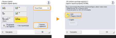 1 | Виберіть <OOXML> виберіть <PowerPoint> із розкривного списку. натисніть <Указати відомості> <OCR (Пошук у тексті)>.![]() |