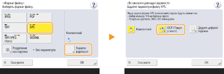 1 | Виберіть <XPS> натисніть <Указати відомості> <OCR (Пошук у тексті)>.![]() |