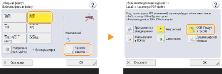 1 | Виберіть <PDF> натисніть <Указати відомості> <OCR (Пошук у тексті)>.![]() |
