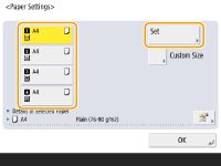 1 | کشوی کاغذی را که کاغذ درون آن بارگذاری شده است انتخاب کنید و <Custom Size> را فشار دهید. |