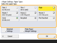 اگر نوع کاغذ بارگذاری شده نشان داده نشد، <Detailed Settings> را برای انتخاب از فهرست فشار دهید.