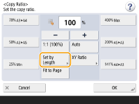 ![]() | می توانید کپی ها را از طریق مشخص کردن ابعاد نهایی، بزرگ تر یا کوچک تر کنید، و با این کار تصویر خروجی متناسب با این ابعاد خواهد شد. می توانید ابعاد افقی و عمودی را به صورت مجزا مشخص کنید. بزرگ تر کردن یا کوچک تر کردن کپی ها از طریق مشخص کردن ابعاد | |