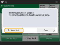 را فشار دهید. وقتی اسکن همه اسناد اصلی تمام شد، <Start Sending> را برای ارسال فاکس فشار دهید.![]() |