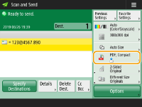 <New Destination> را فشار دهید و <E-Mail> یا <File> را انتخاب کنید.