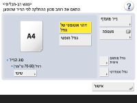 אם מוצג מסך שאינו המסך לציון גודל וסוג הנייראם מוצגת הודעה המבקשת ממך לכוונן את מכוון הנייר, כוון שוב את רוחב מכוון הנייר ולחץ על <אישור>. |