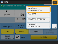 המסך <בית>באמצעות <פקס> ו-<סריקה ושליחה>, ניתן לשנות את מסך ברירת המחדל למסך <הגדרות מועדפות>.