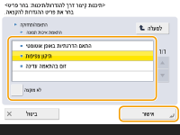 ניתן לבחור את הלחצן שהוקצה כדי לשנות את ההגדרות הרשומות.